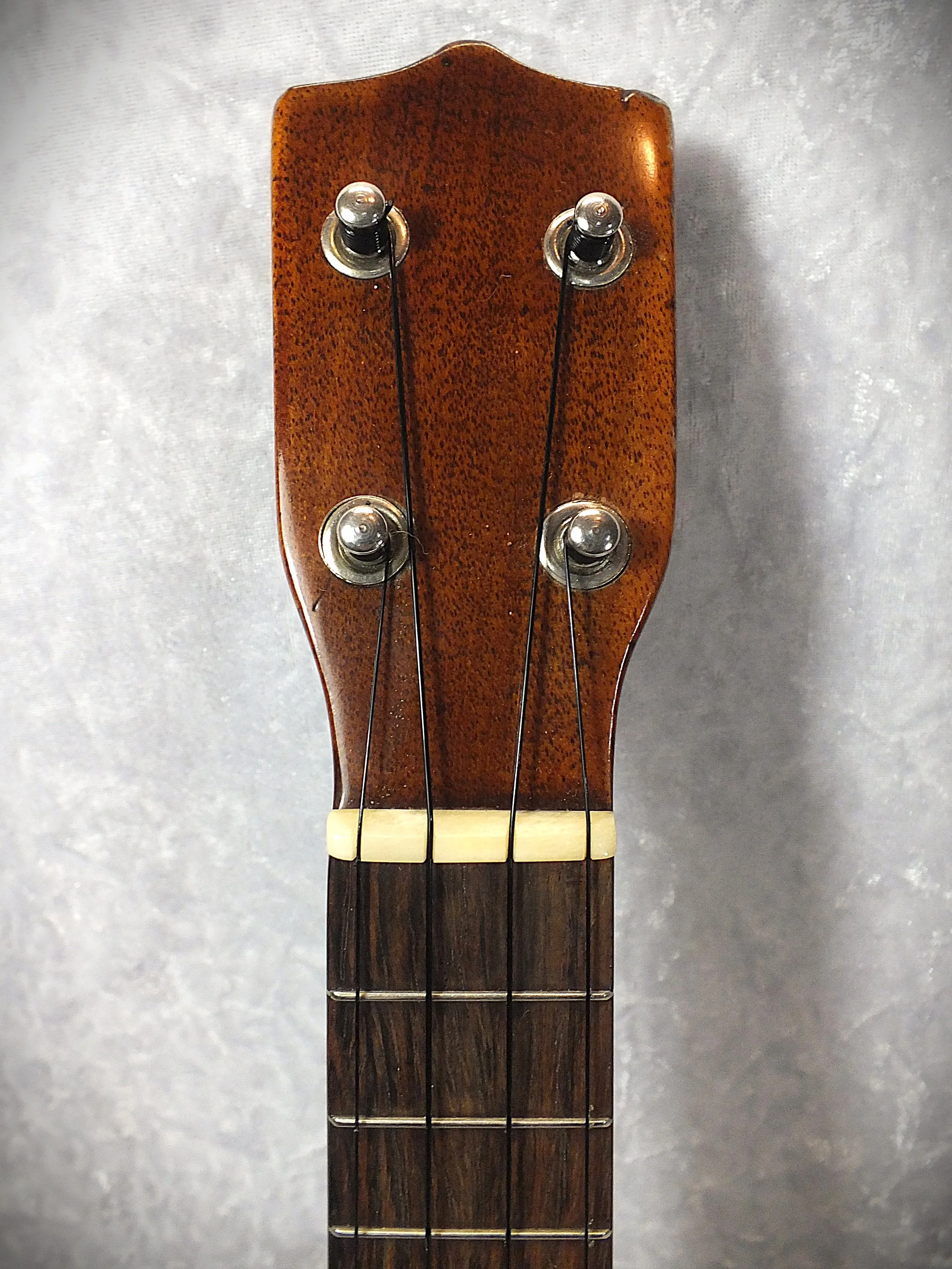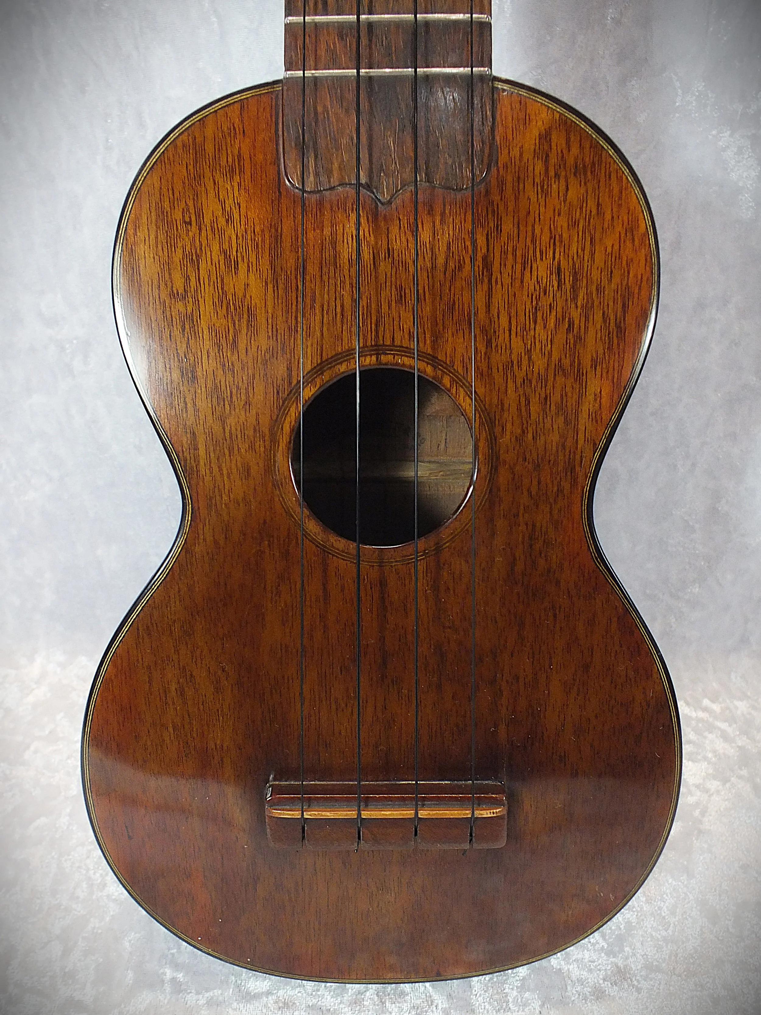 The ukulele has been refinished in the past, with the work carried out cleanly and sympathetically. At some point in its life, internal cleats were added to address historic cracking; this work is to a very good standard, has remained stable over time, and presents no current structural concerns.