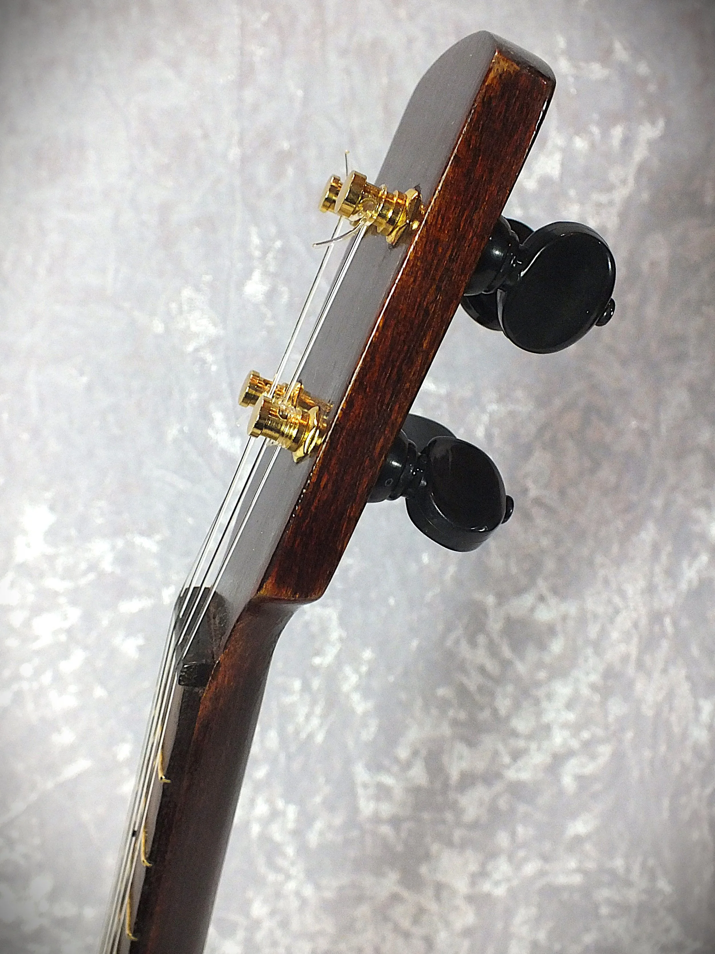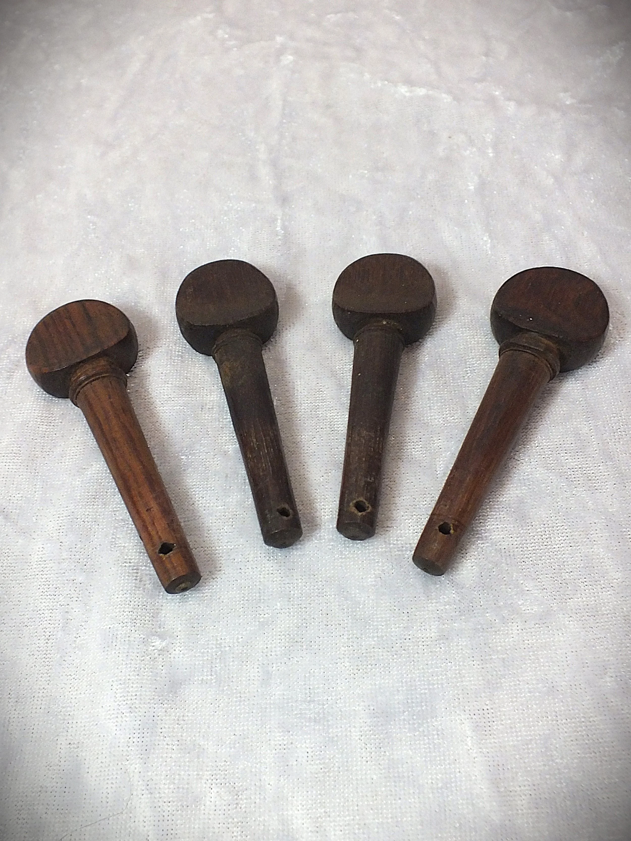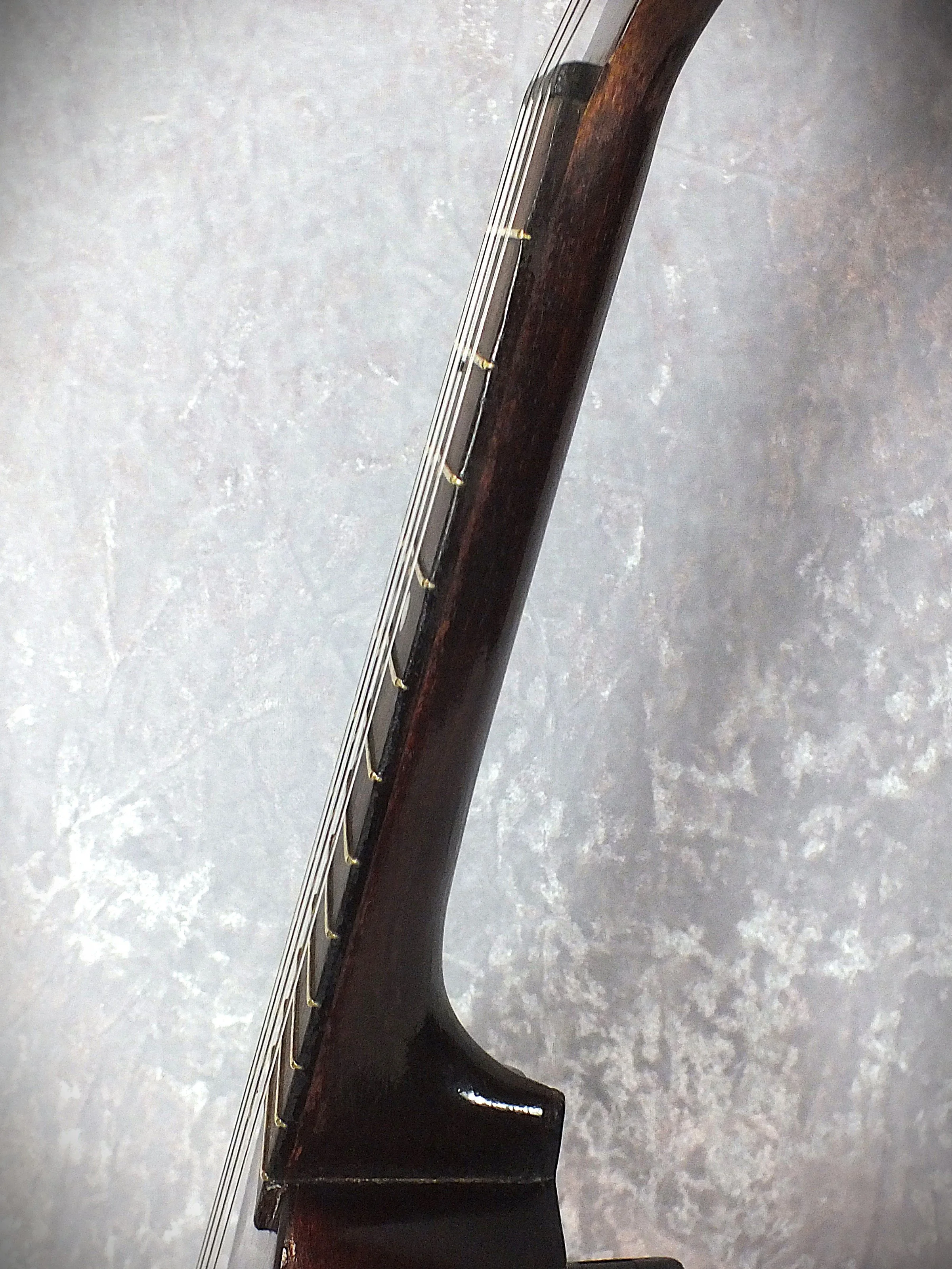 The replacement friction tuners function well and make the instrument far more practical for modern use. The original wooden pegs are retained and included with the instrument for completeness.